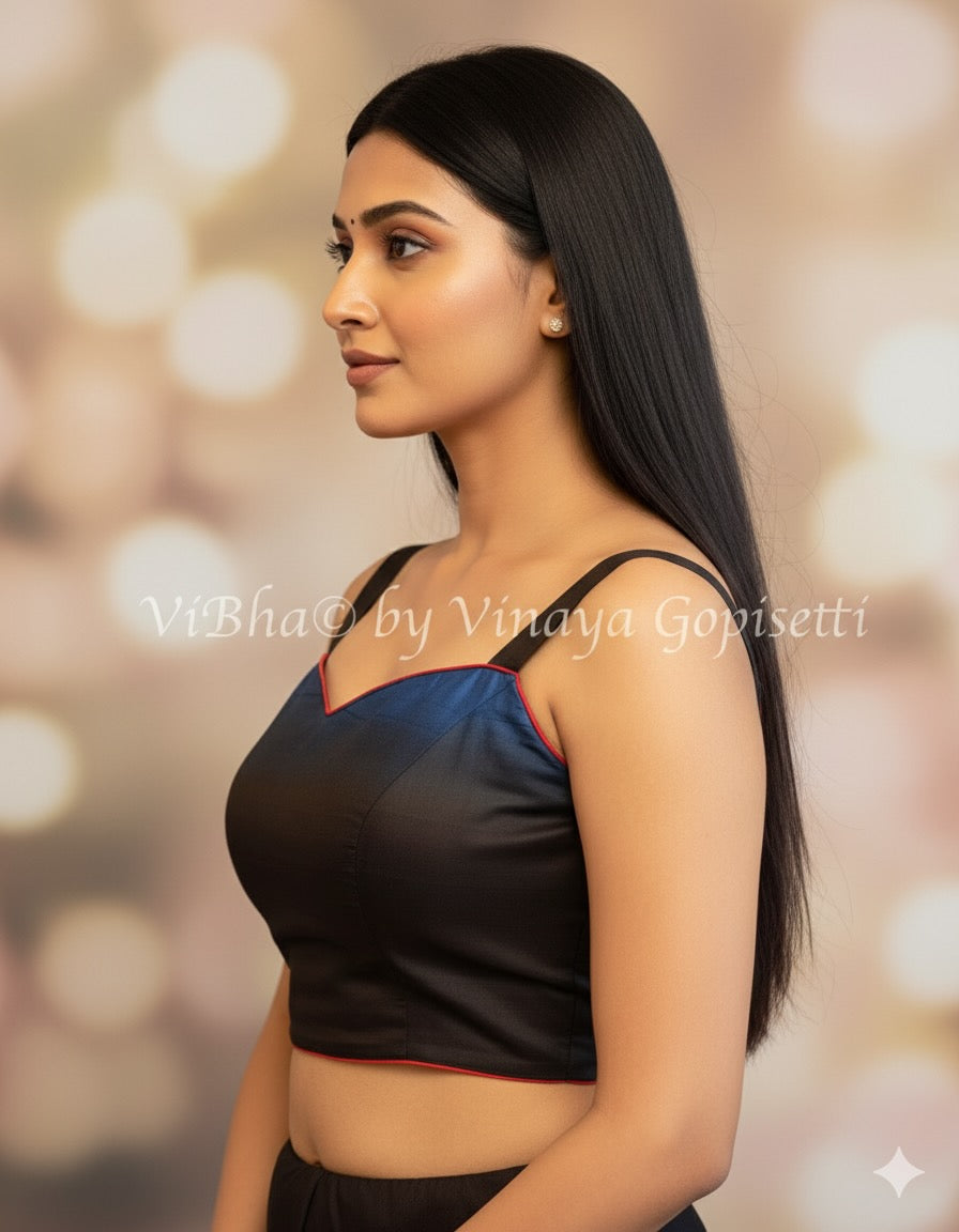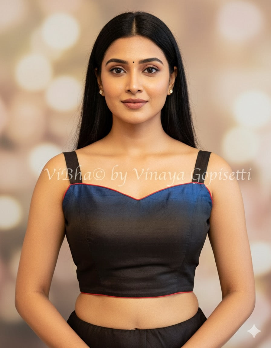 Blue And Black Soft Silk Blouse