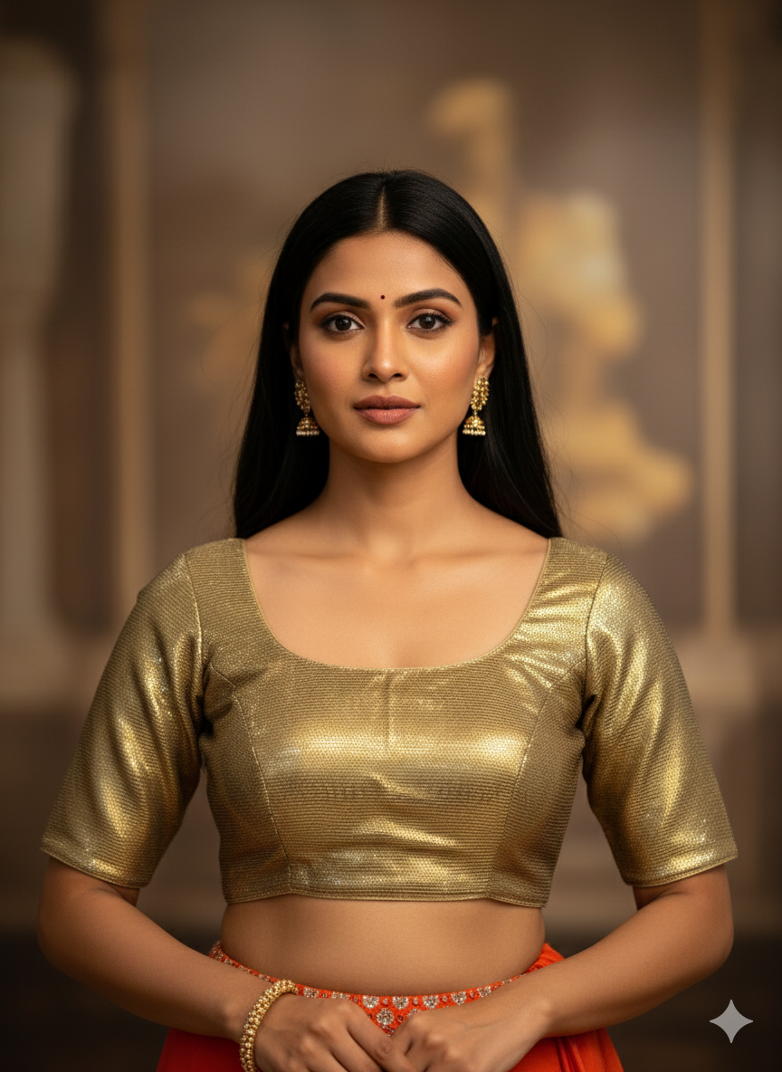 Elevate your evening wardrobe with this sophisticated Dull Gold Sequins Blouse. Crafted with meticulously placed sequins in a warm, muted gold tone, this piece delivers understated glamour without overwhelming shine. The subtle sheen creates dimension and movement with every gesture, making it ideal for cocktail events, celebrations, or upscale gatherings. The expertly chosen dull finish ensures a refined aesthetic that pairs seamlessly with both traditional and contemporary styling. Perfect for those who appreciate quality embellishment and timeless elegance.
