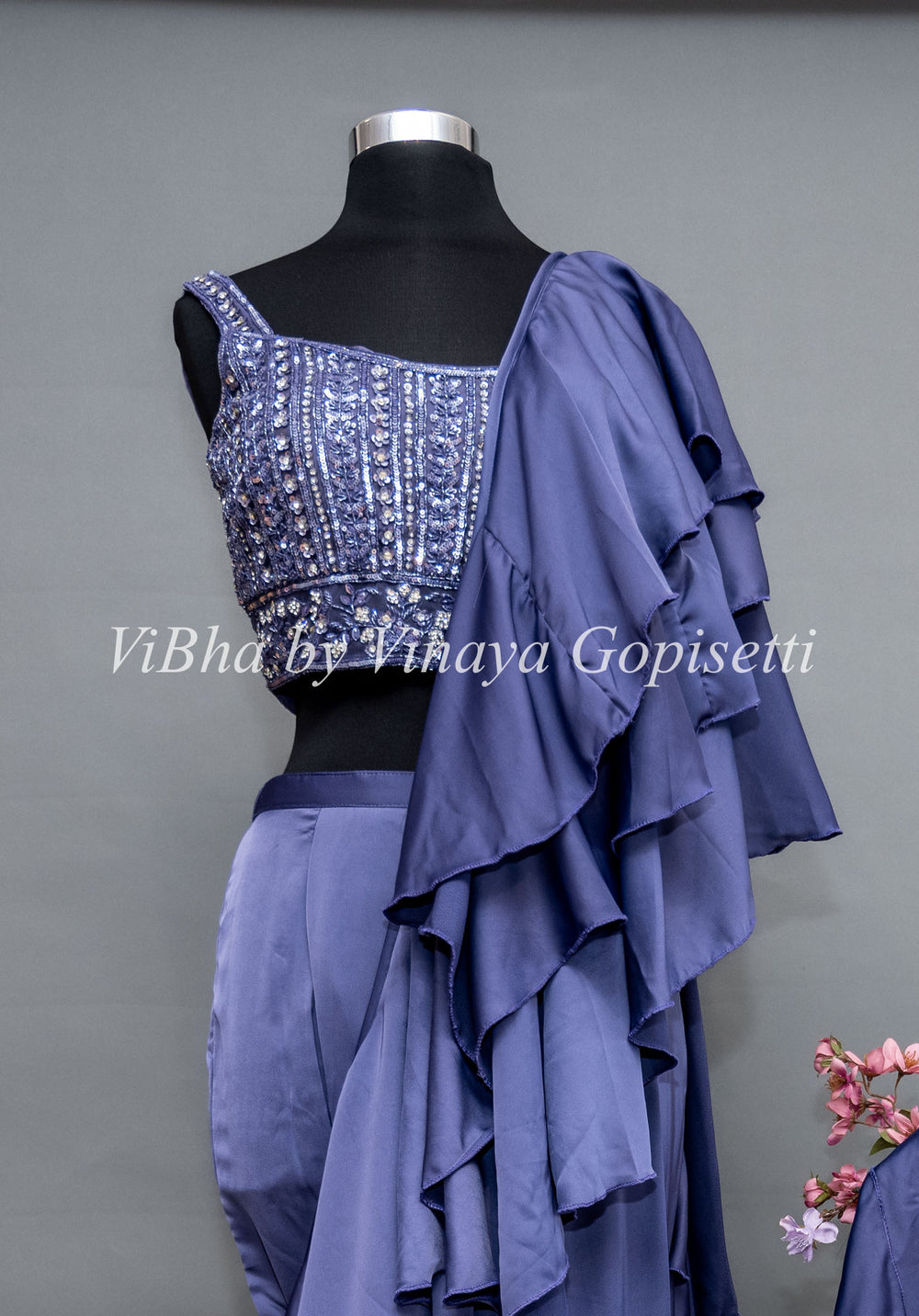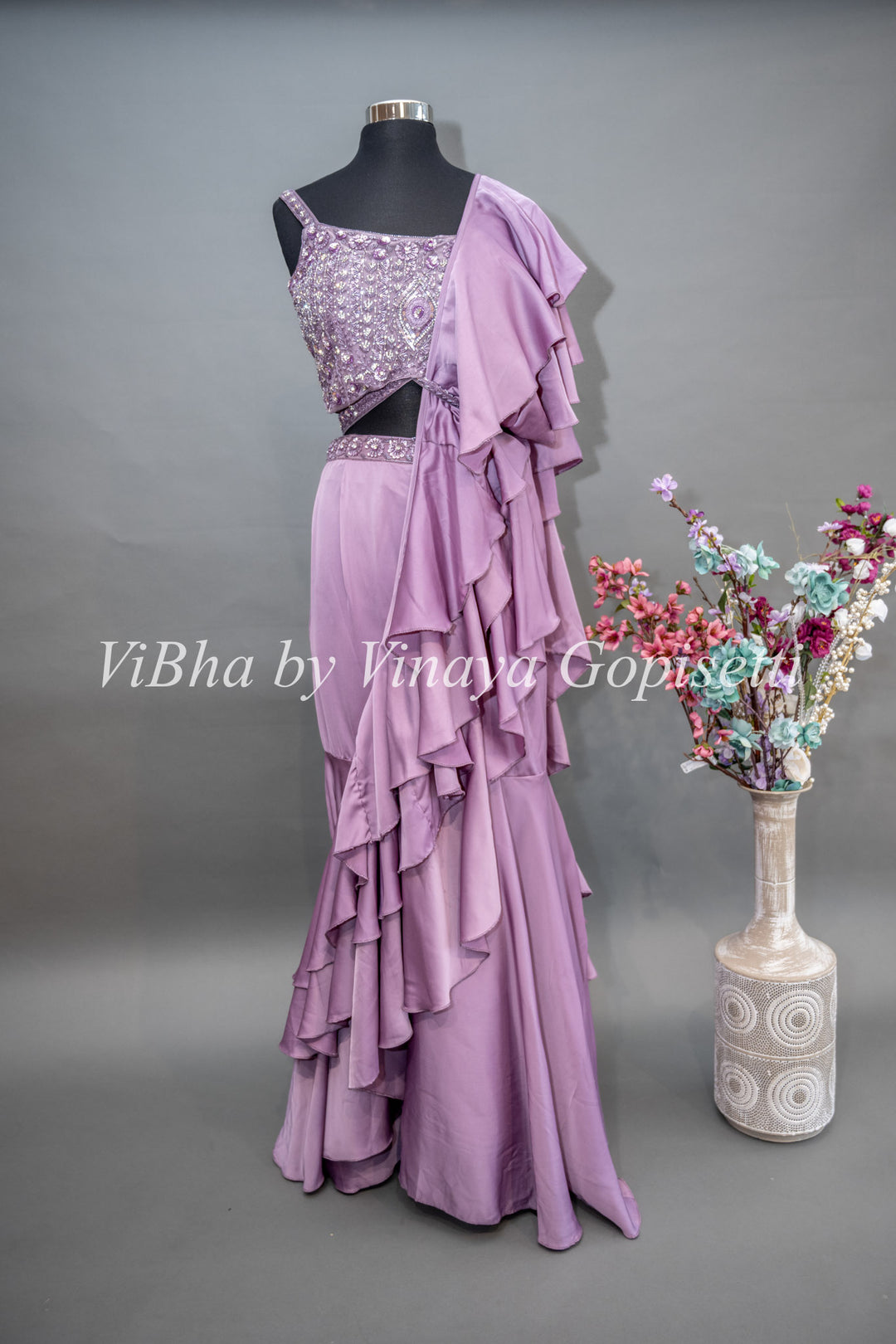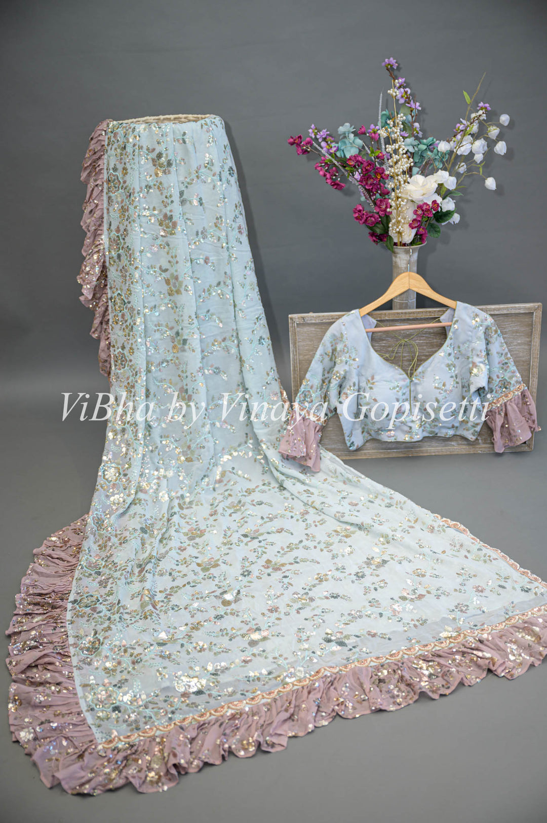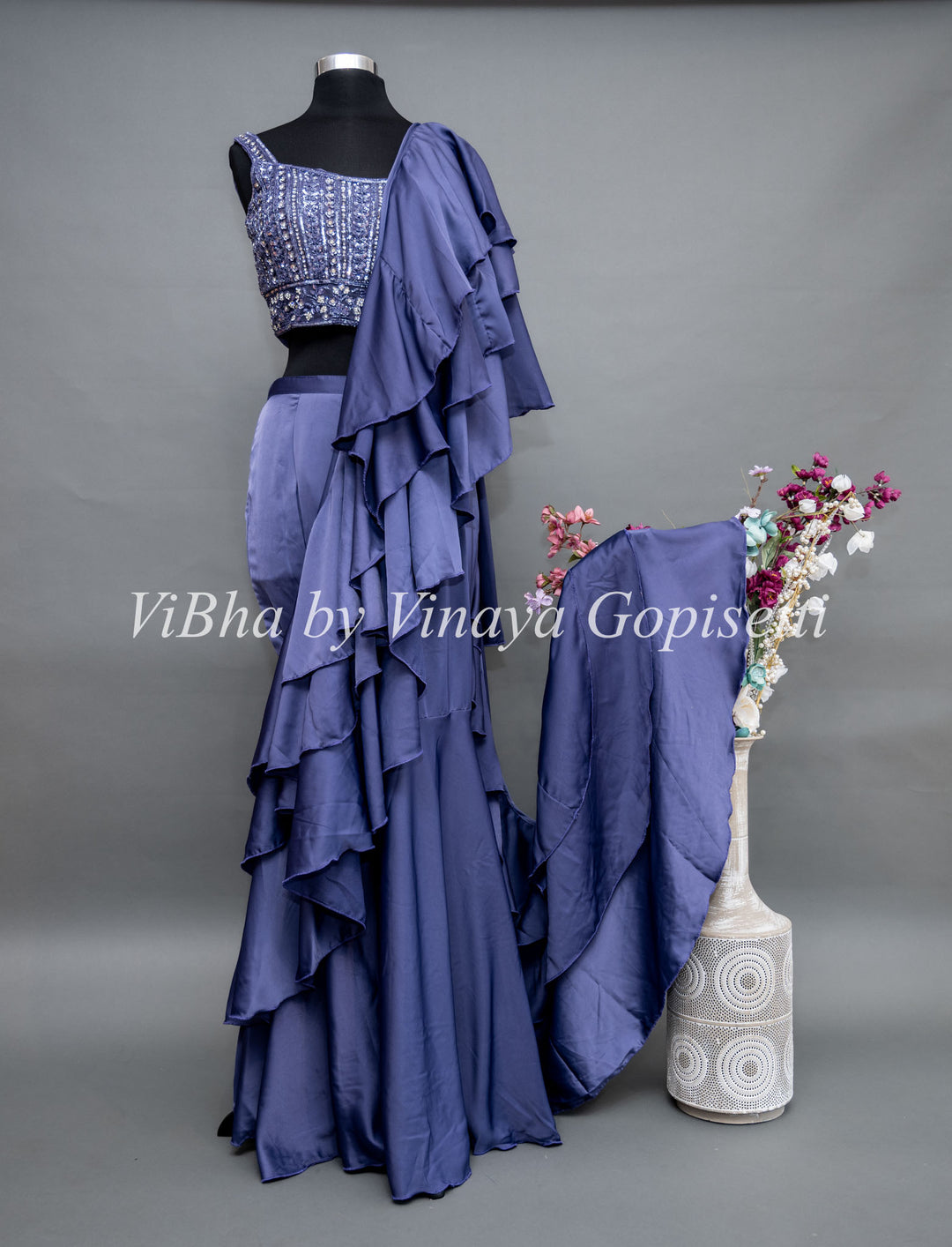 Dazzling luminous designs crusted with sparkles, sequins, crystals, frills, and ruffles!! With a modern twist, each saree from this collection is paired with a unique blouse - creating a mystic and frenetic ensemble.