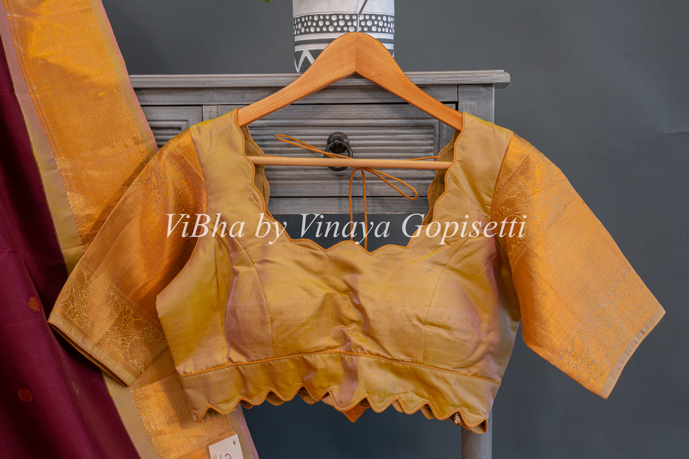 Magenta and Gold Gadwal Silk Saree with Blouse