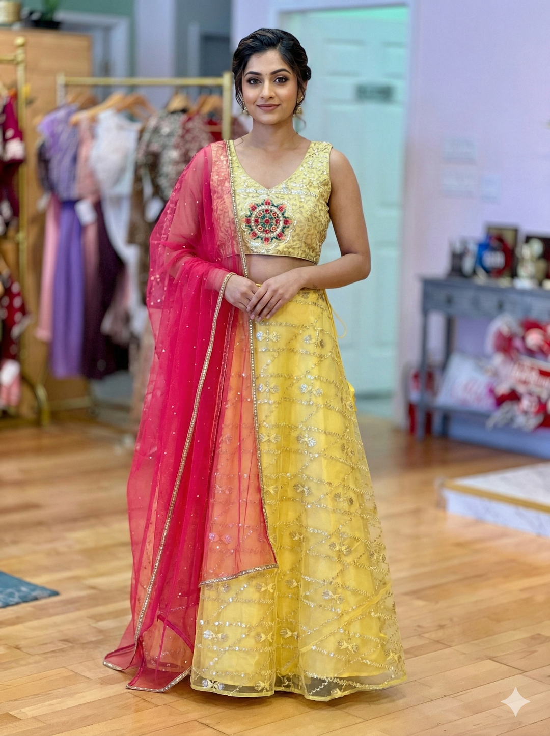Shop Haldi ceremony outfits in the Bay Area at ViBha in Sunnyvale, CA — thoughtfully designed for brides, grooms, and wedding guests celebrating one of the most joyful pre-wedding rituals. Our Haldi Collection features vibrant yellows, soft florals, and festive silhouettes created to capture the warmth and beauty of this special ceremony.