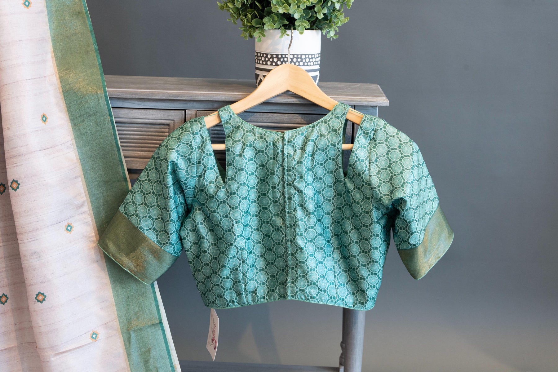 2. Saree Blouse is provided with a room inside on both the sides, to adjust upto next 2 sizes below or above. All blouses come with built in pads. The pads are removable.