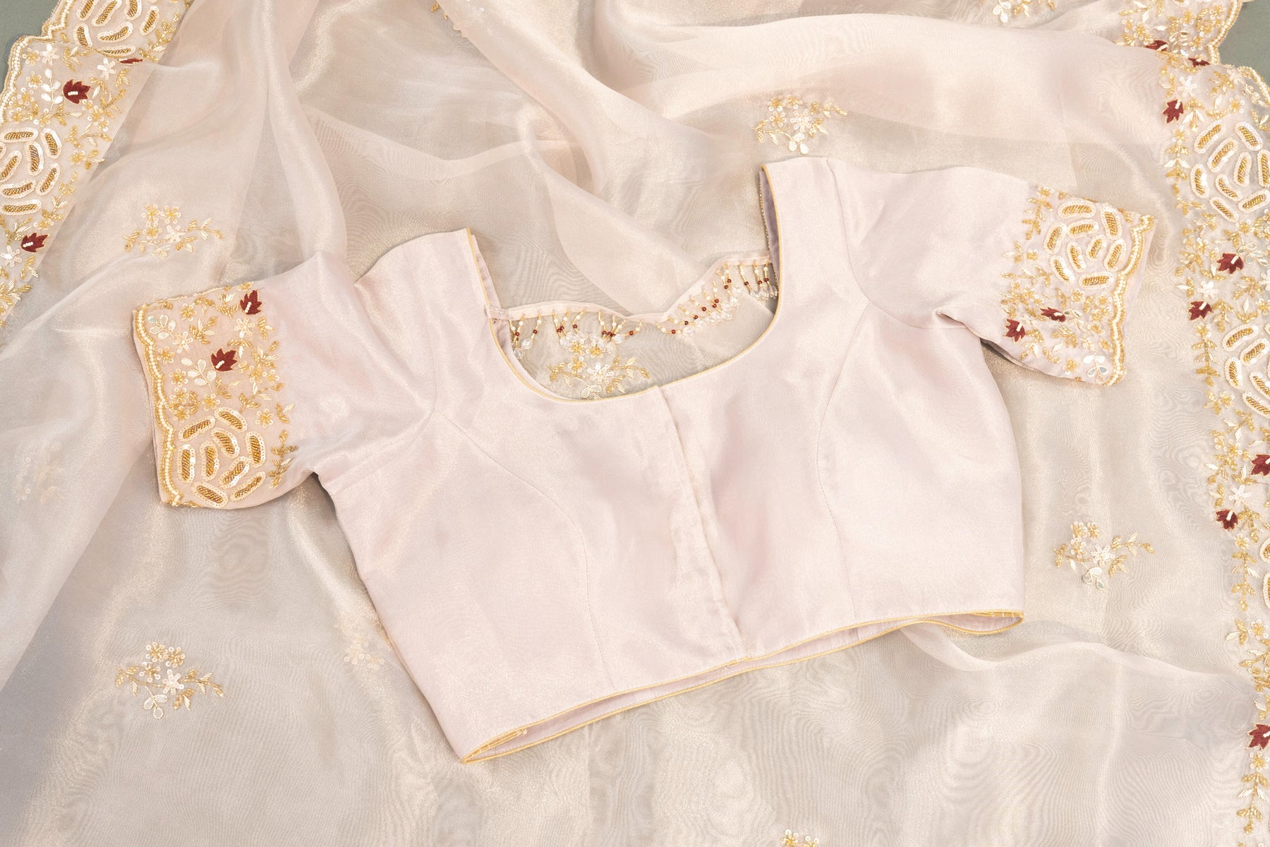 Pastel Mauve Soft Organza Saree And Blouse With Hand-Embroidery