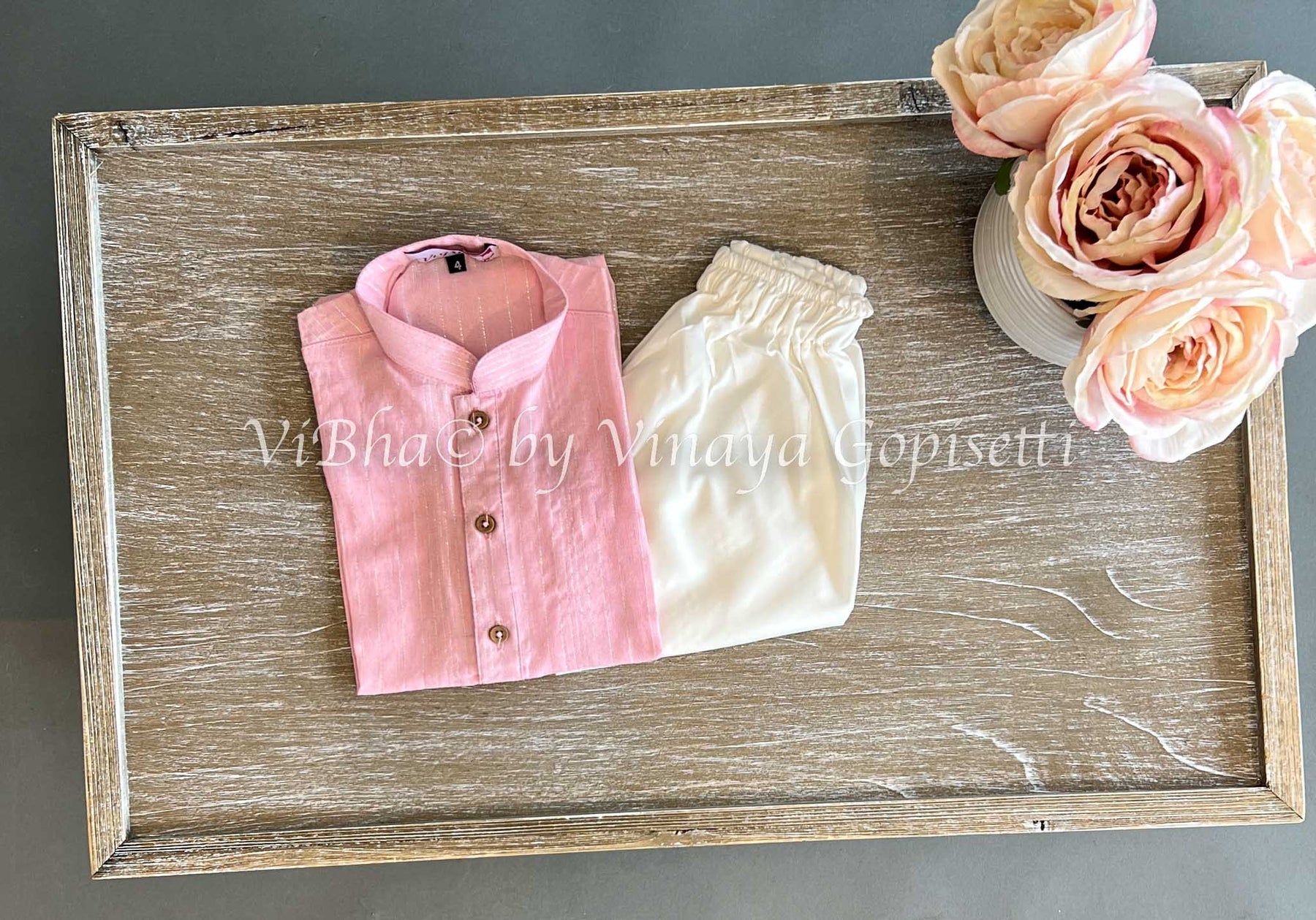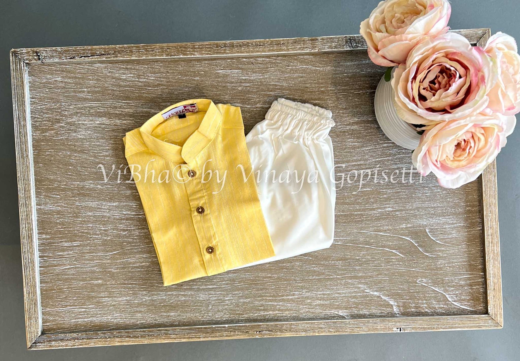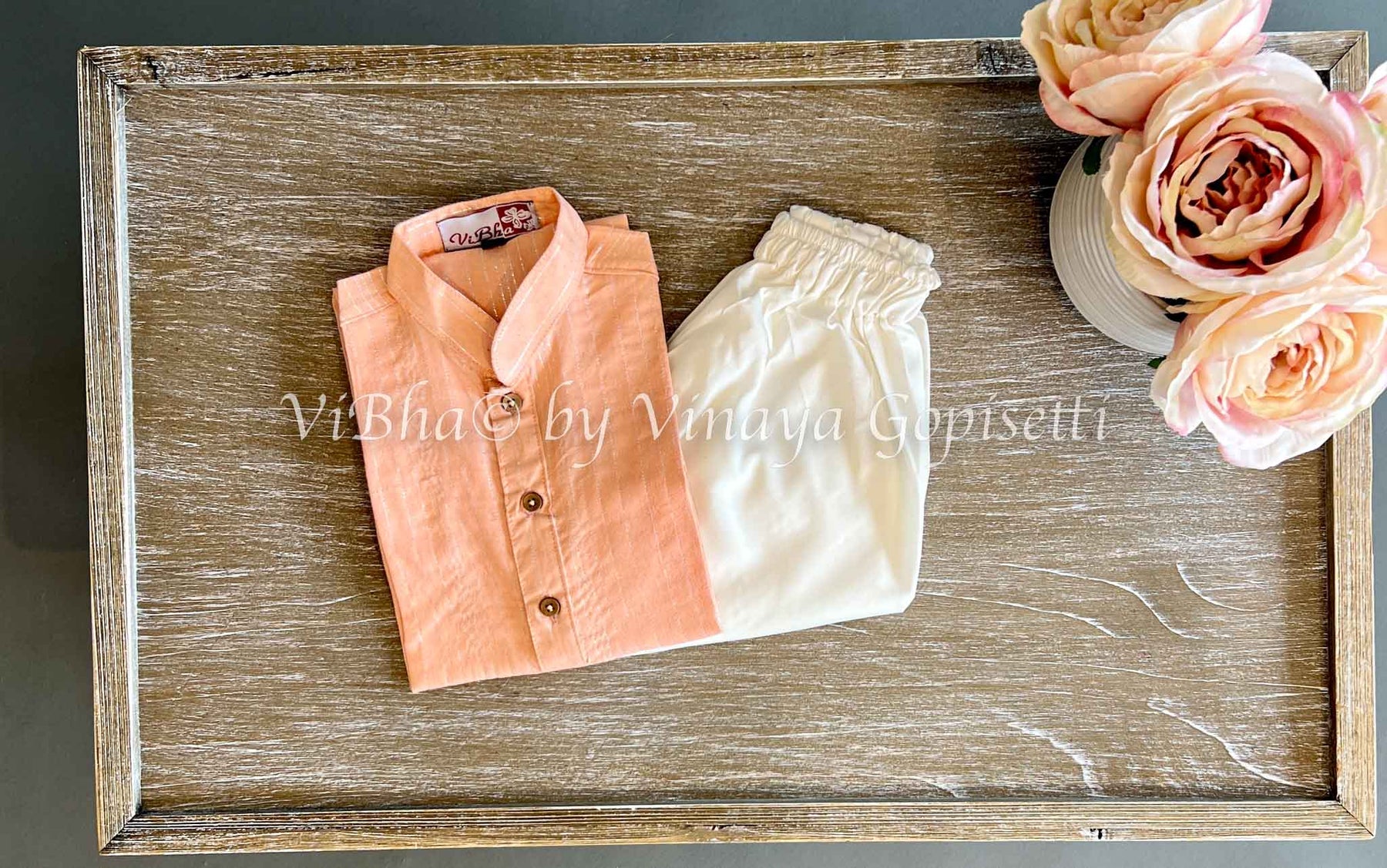 Kids Wear - Handloom Zari Cotton Kurta With Bottom