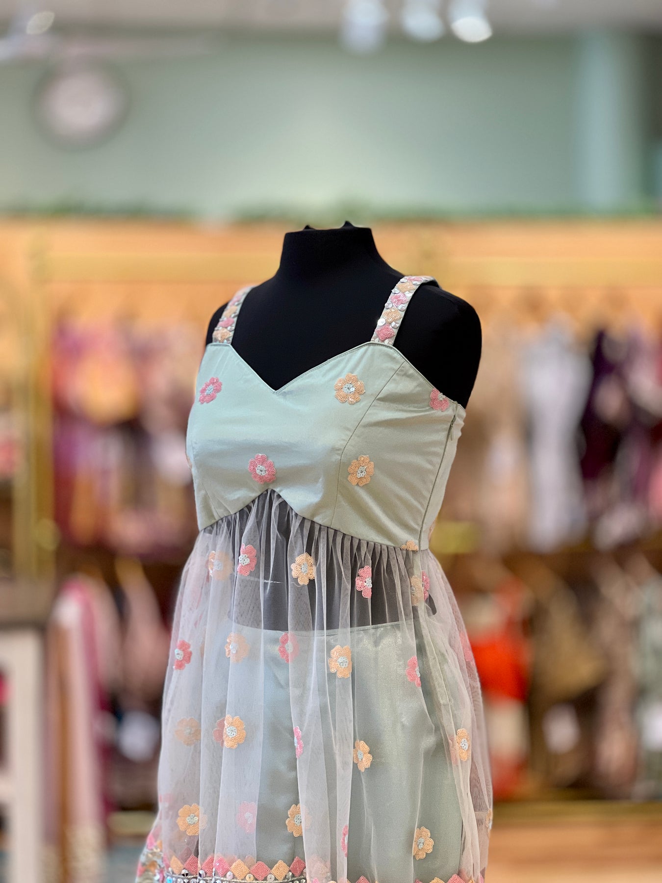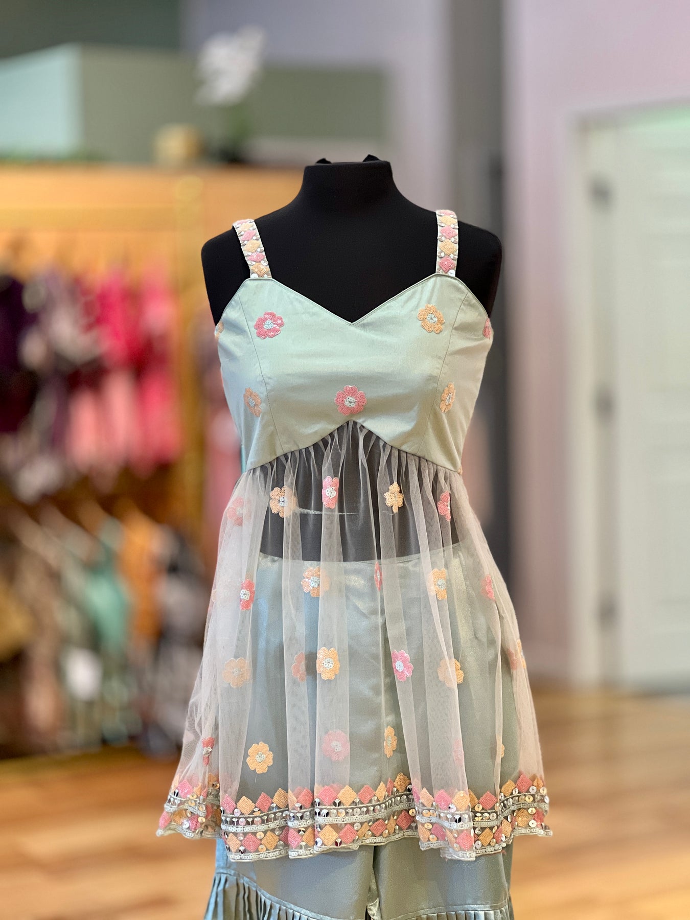 Sage Green Sequins Embroidered Gharara Set With Choker Dupatta