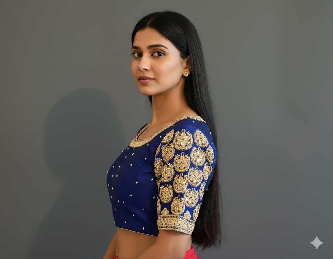 1. Saree Blouse is provided with a room inside on both the sides, to adjust upto next 2 sizes below or above.