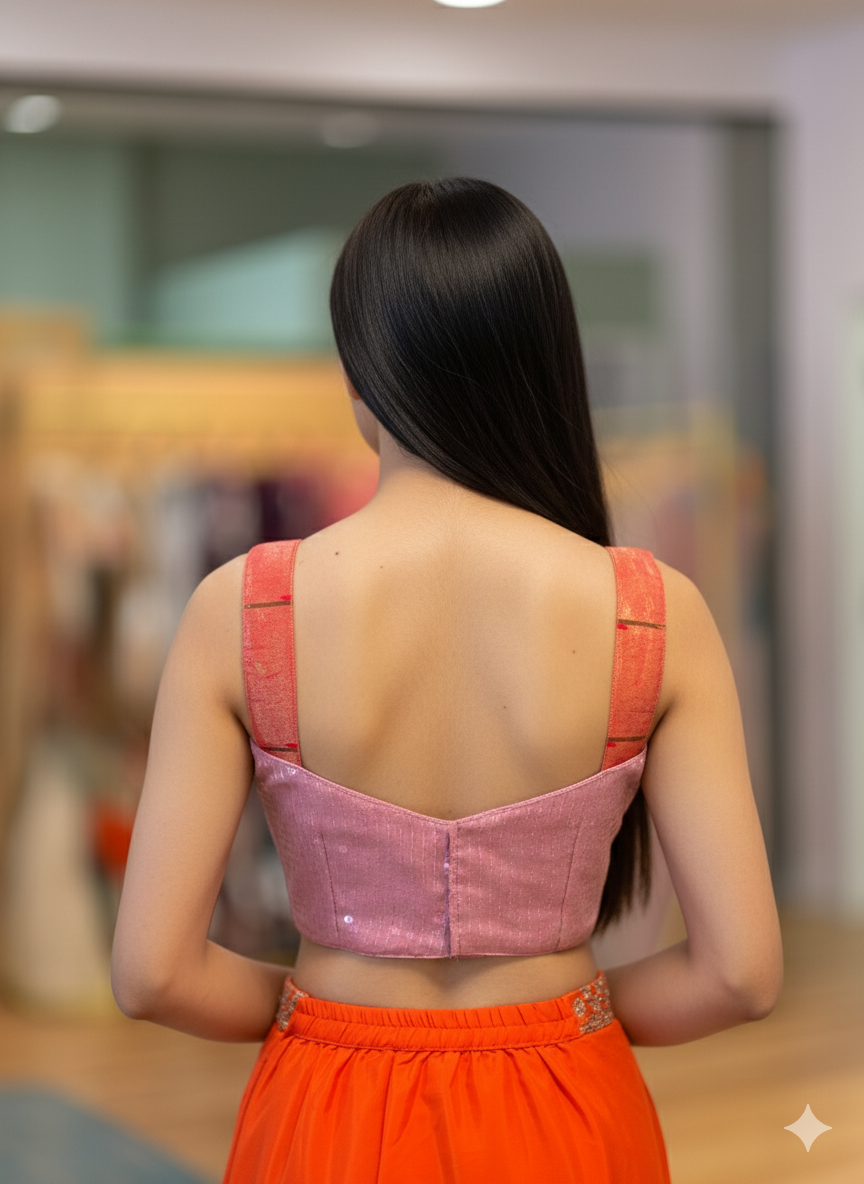 Light Purple Sequins Blouse WIth Paithani Straps Sleeveless Blouse
