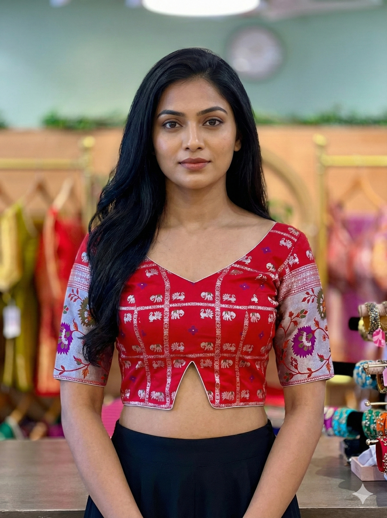 Red Banarasi silk blouses represent the pinnacle of traditional Indian craftsmanship. This piece features authentic Banarasi silk, renowned for its lustrous finish and intricate gold zari work that catches light beautifully. The rich red hue symbolizes elegance and sophistication, making it ideal for weddings, festivals, and formal occasions. Hand-loomed with meticulous attention to detail, each blouse showcases the weaver's expertise. The natural silk fabric drapes gracefully while providing comfort and breathability. Perfect for pairing with traditional sarees or contemporary styling, this timeless garment celebrates heritage while offering versatile wear for the discerning wardrobe.